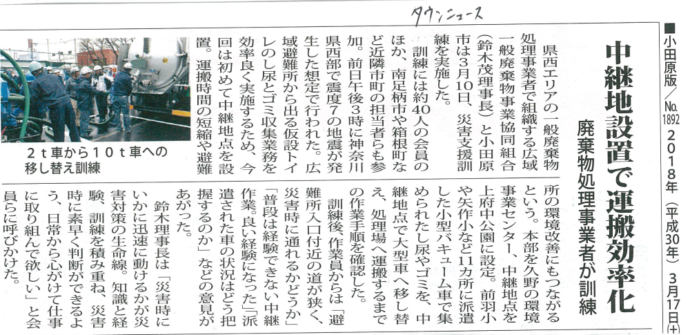 2018年3月10日(土) 小田原市と第17回災害支援訓練を実施しました。