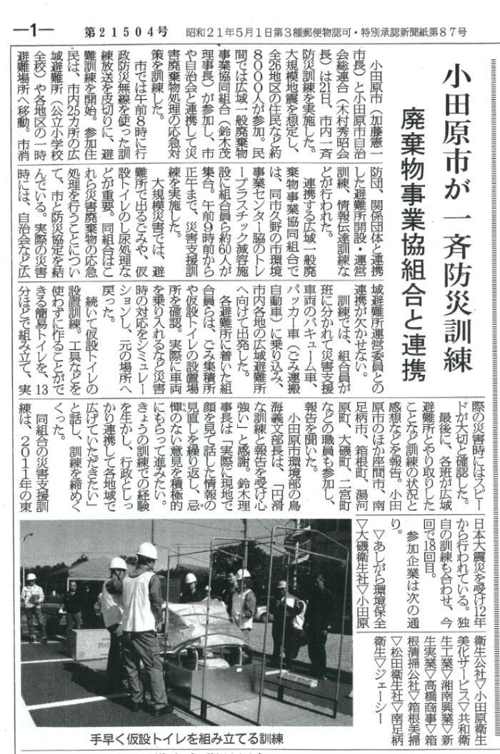 2018年10月21日(日) 小田原市と第18回災害支援訓練を実施しました。
